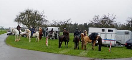 Am Samstag, den 27.04.2013 trafen sich bei ca 4 Grad und Nieselregen von 23 gemeldeten Teilnehmern 15 wetterfeste Wanderreiter mit Ihren Pferden in Schmieh beim Farrenhof, um die Wanderreitsaison zu eröffnen. Am Start war ein bunter Mix von Pferderassen, wie Tennessee Walker, Missouri Foxtrotter, Isländer, Vollblutaraber, Arabermix, Haflinger Andalusiermix und Shire Horse