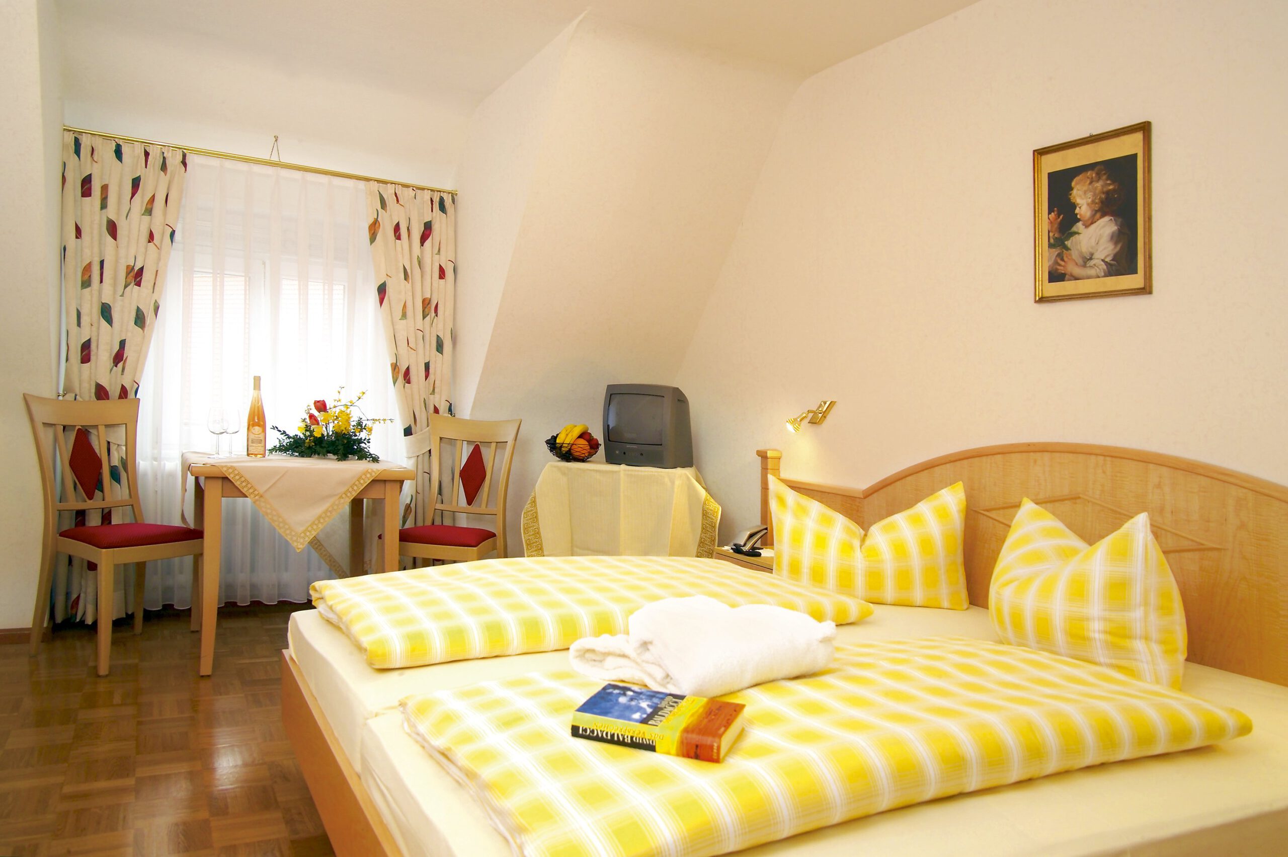 Zum Übernachten laden 17 Gästezimmer ein. Jedes davon ist geprägt von seinem individuellem Charme. Eingerichtet zum Teil mit handbemalten Bauernmöbeln, Rüster oder Ahorn bis hin zu Bambus.